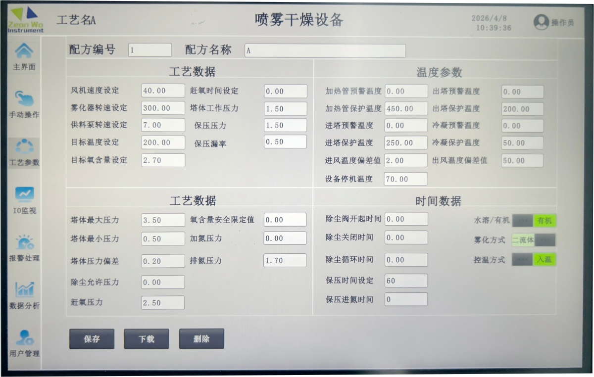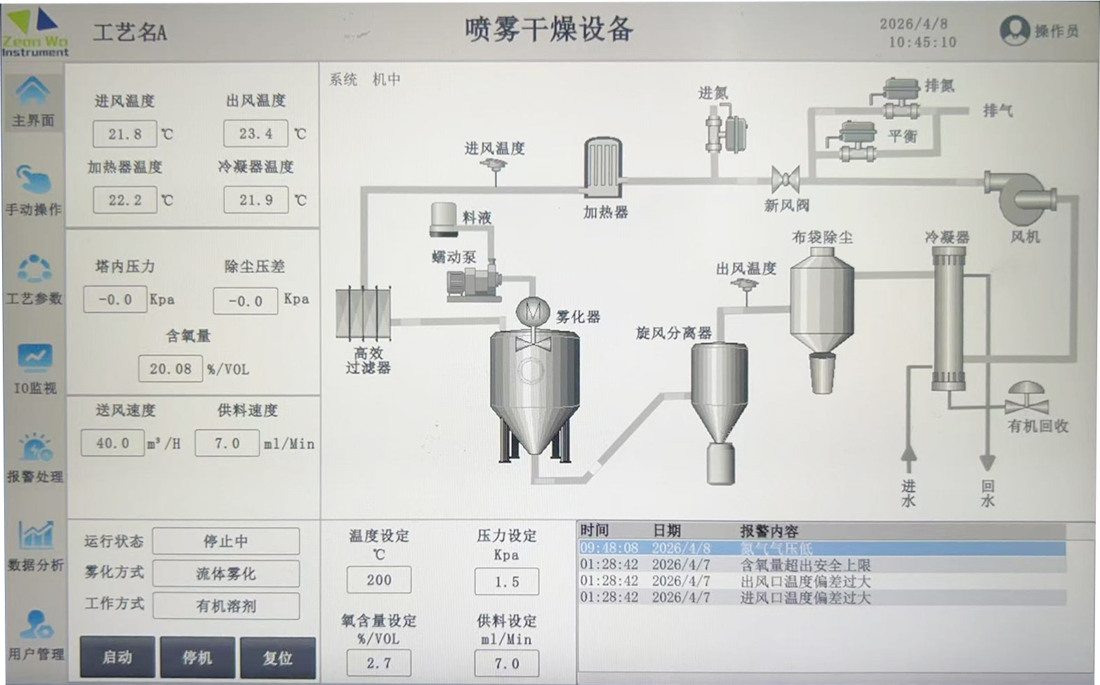 适用于水溶剂/有机溶剂、多肽等热敏物料干燥,全流程工艺参数可实现精准调控。